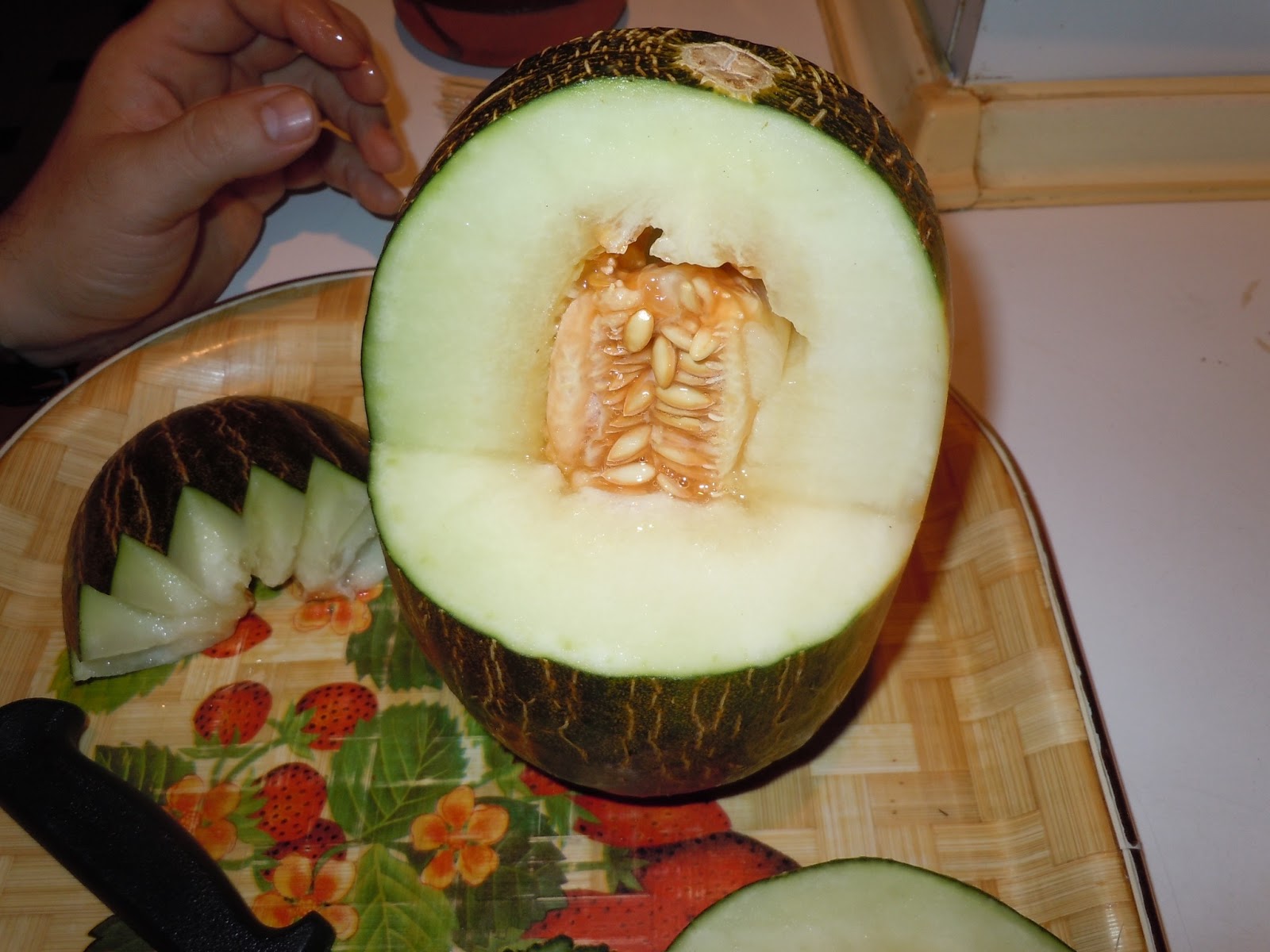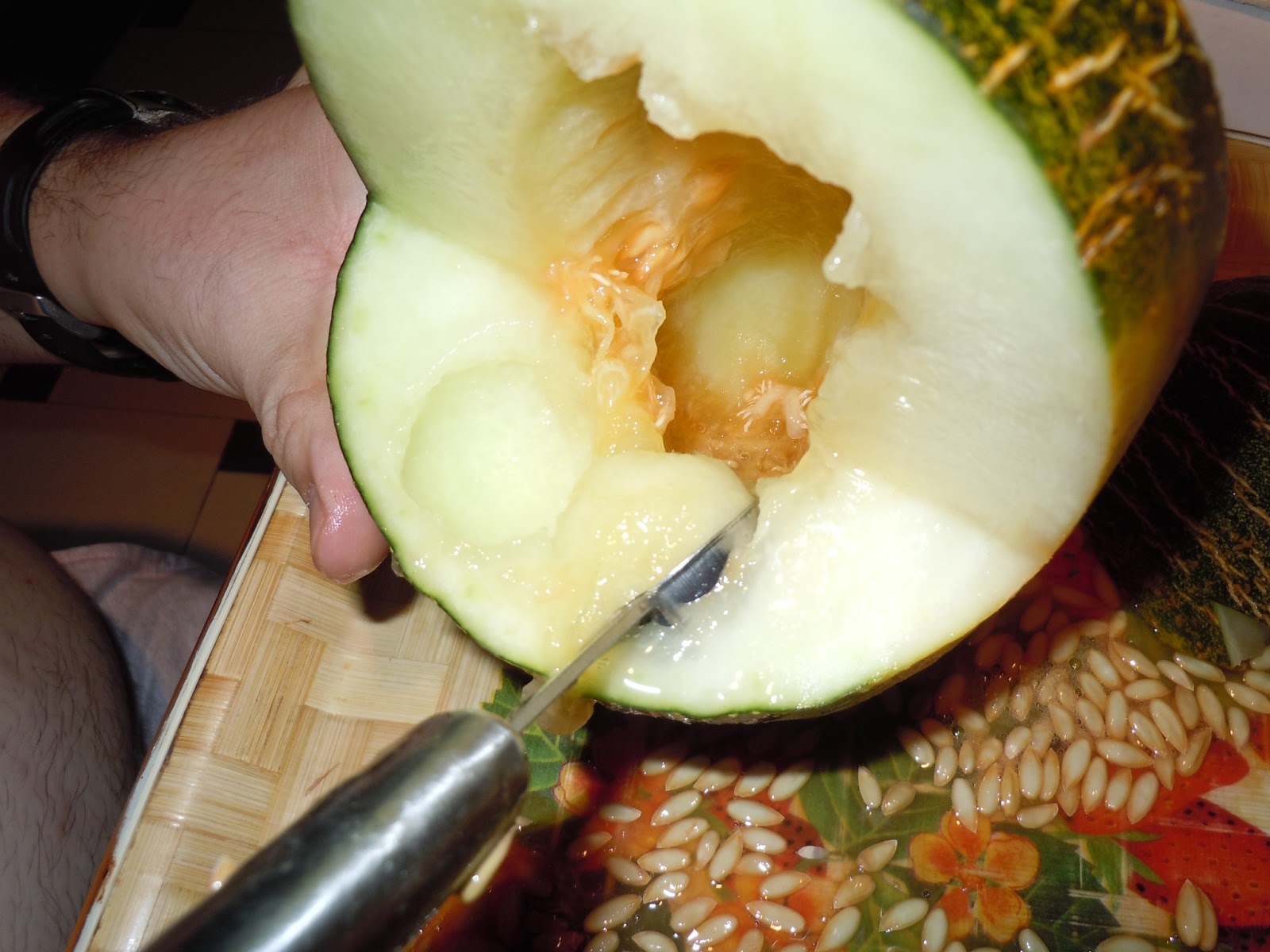 Vaciamos las pepitas del melón.