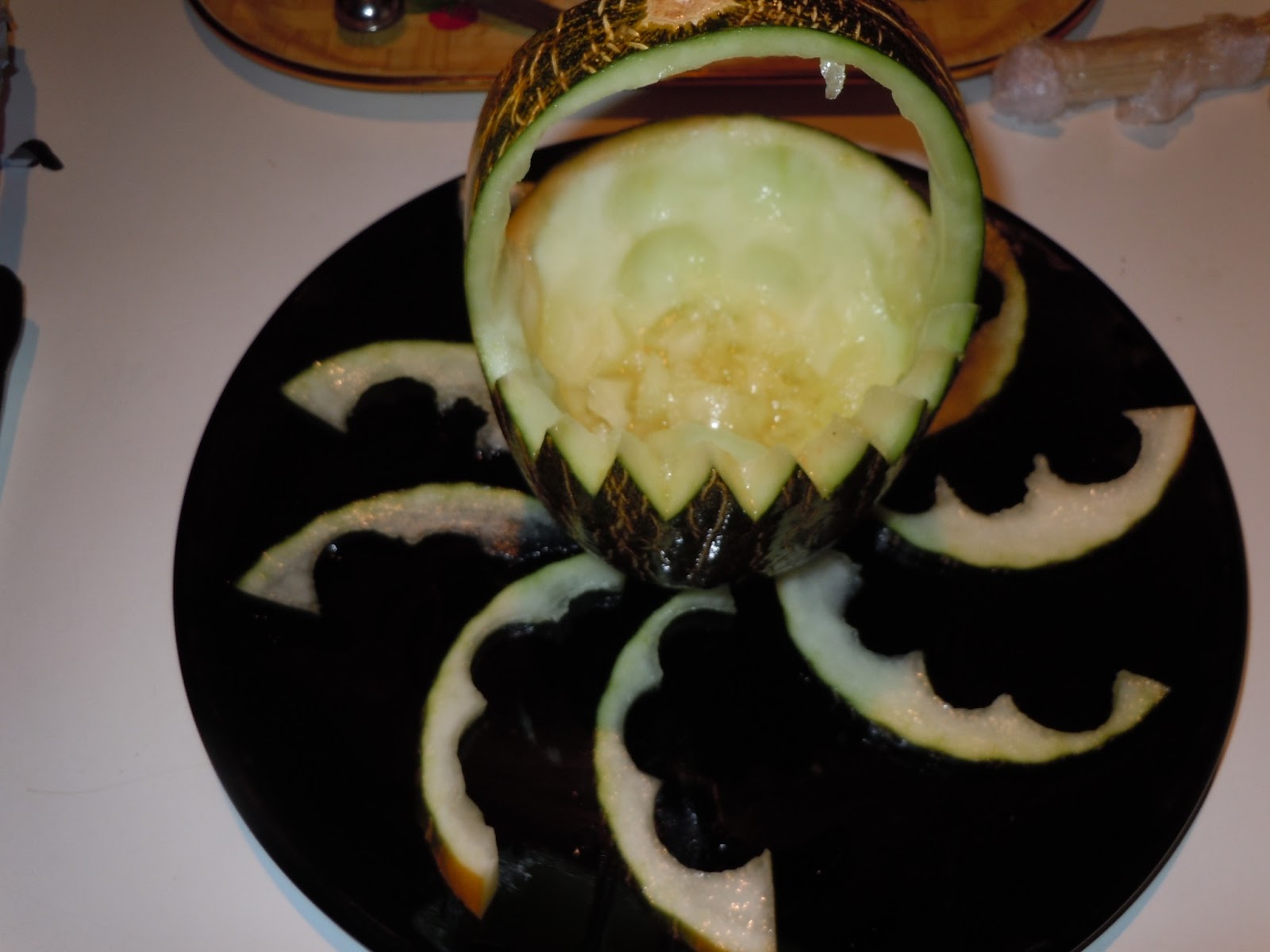 Cuando ya hemos vaciado el melón por completo,presentamos en un plato.