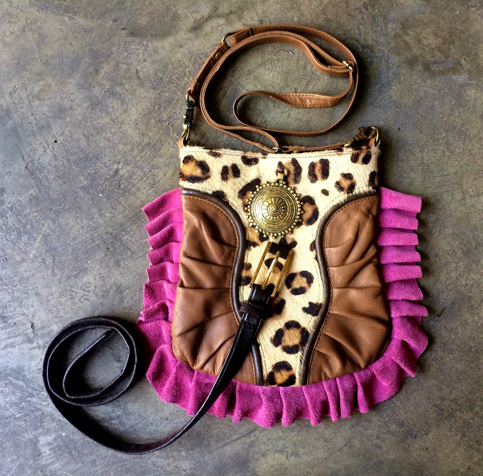 Es uno de mis preferidos, combina pieles y colores que me gustan mucho: serraje fucsia, vaqueta en tono castaño, greta marrón oscura y animal print.