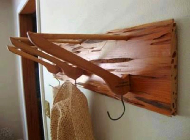 Perchas: a continuación tenéis una forma de dar luz con las más sencillas y austeras. La siguiente imagen no modifica su uso, pues en ahí las perchas seguirán sirviendo para colgar. La última, sin embargo, os proporcionará una idea muy original para reconvertir sillas en perchas.