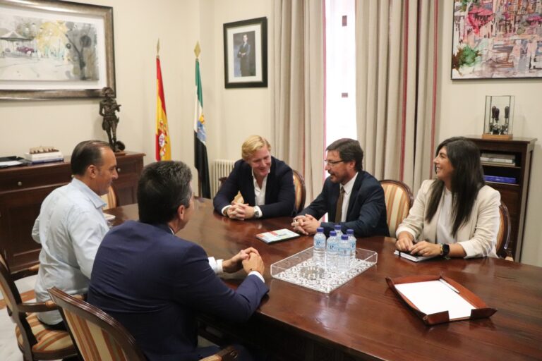 El consejero de Economía, Empleo y Transformación Digital de la Junta de Extremadura, Guillermo Santamaría, junto al secretario general de Economía, Empresa y Comercio, Víctor