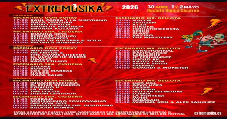 El festival Extremúsika ya ha publicado los horarios de su nueva edición, que se celebrará del jueves 30 de abril al sábado 2 de mayo