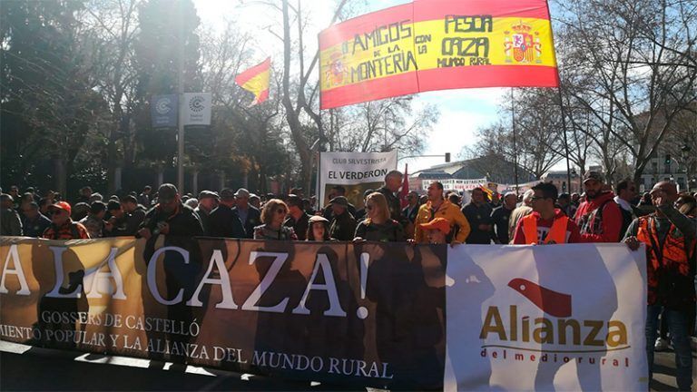 El campo se traslada al asfalto de Madrid. Agricultores y ganaderos se manifiestan en defensa del mundo rural, contra la prohibición cautelar de la caza
