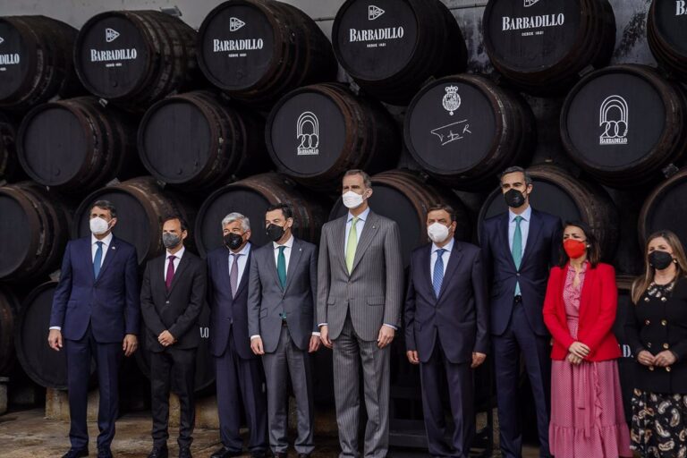 El Rey de España, Felipe VI, dentro de su visita a Sanlúcar de Barrameda (Cádiz), ha conocido de primera mano la sede de Bodegas Barbadillo, una de las diez empresas familiares más antiguas de España, y que en la actualidad mantiene en plantilla a más de 80 empleados y factura más de 20 millones de euros al año.