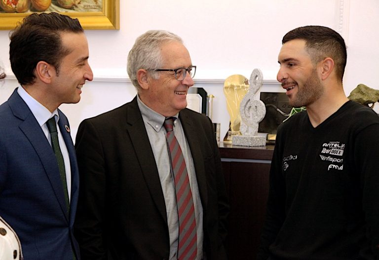 El campeón de ciclismo adaptado en ruta y en pista, Rubén Tanco, ha sido recibido este jueves en la Diputación de Badajoz, entidad patrocinadora del