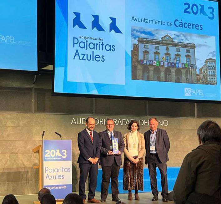Cáceres recibe tres Pajaritas Azules, el máximo reconocimiento, por su gestión en la recogida selectiva de papel y cartón