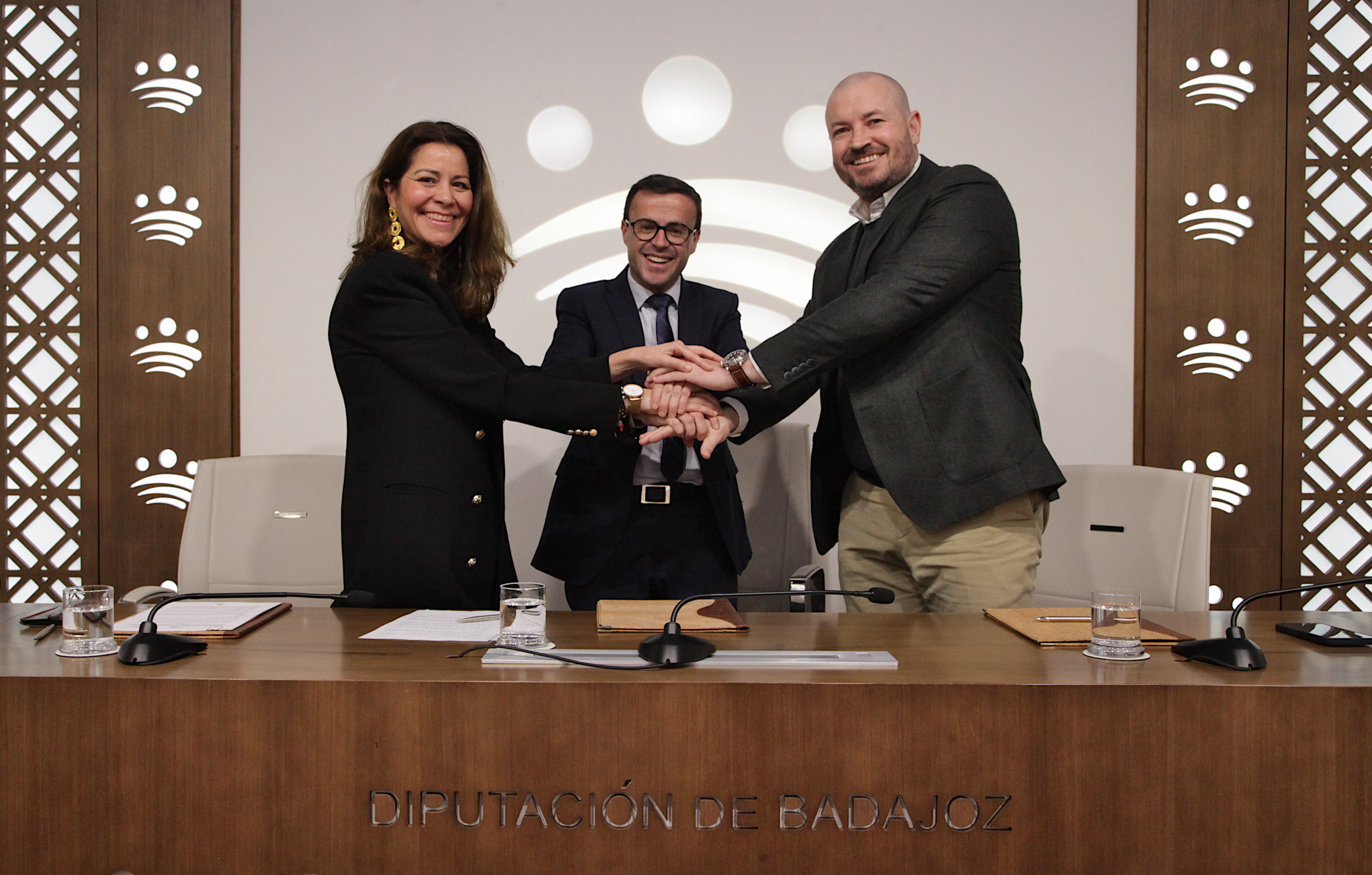 El presidente provincial, Miguel Ángel Gallardo, ha firmado hoy el convenio con el Ayuntamiento y la Fundación para adecuar la vivienda del pintor extremeño El