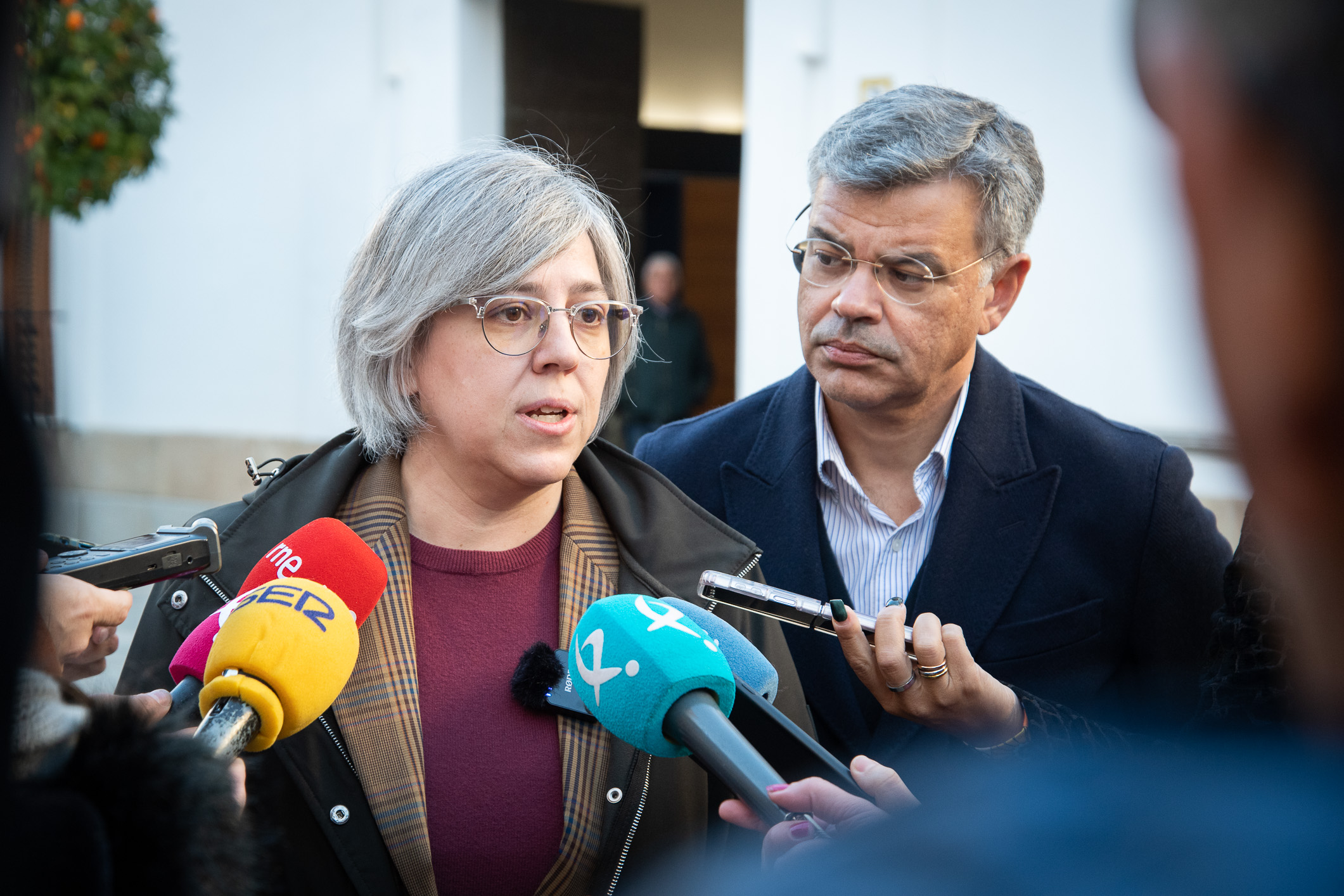 La consejera de Movilidad, Transporte y Vivienda, Leire Iglesias, y el portavoz de la Junta de Extremadura, Juan Antonio González, han registrado este lunes en