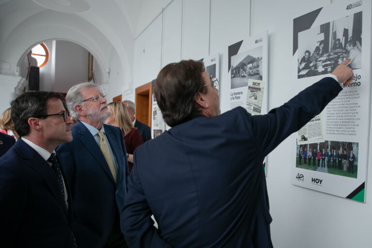 El presidente de la Junta de Extremadura, Guillermo Fernández Vara, ha asistido este miércoles a la inauguración de la exposición del Diario Hoy «40 aniversario