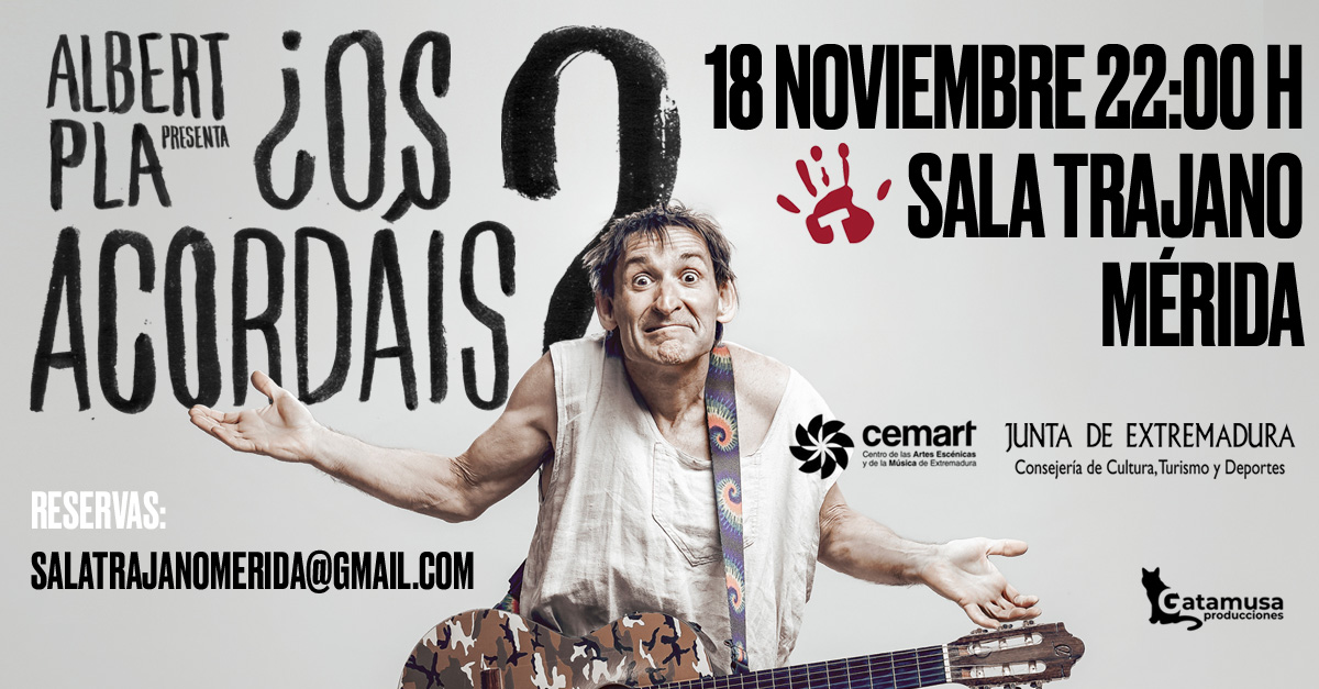 La Sala Trajano de Mérida presenta una variada oferta para el fin de semana. La programación comenzará con el concierto del artista Albert Pla que