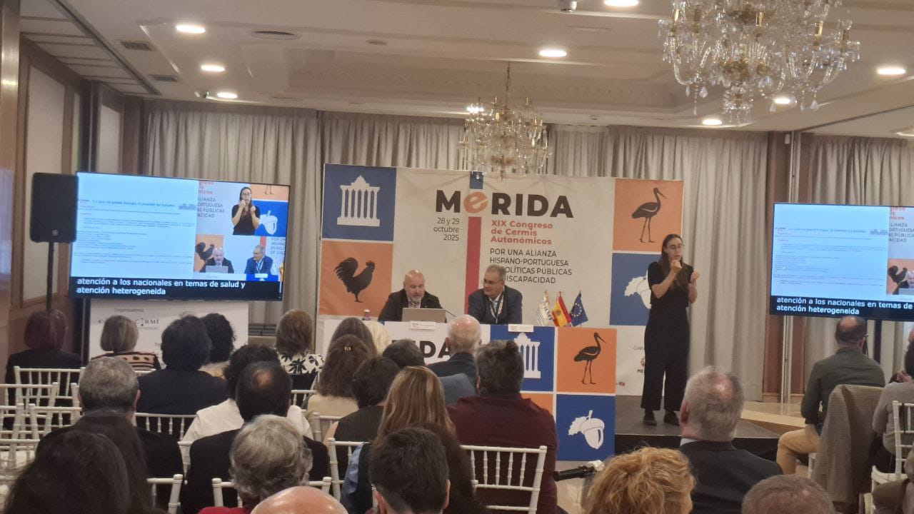 Con esta intensa primera jornada, el XIX Congreso de CERMIS Autonómicos consolidó su papel como espacio de referencia para la cooperación hispanoportuguesa en materia de discapacidad. Las sesiones continuarán el miércoles 29 en la Asamblea de Extremadura, con nuevas ponencias sobre la Unión Europea, las mujeres y niñas con discapacidad y la lectura de la Declaración de Mérida sobre Políticas de Discapacidad en la Frontera.