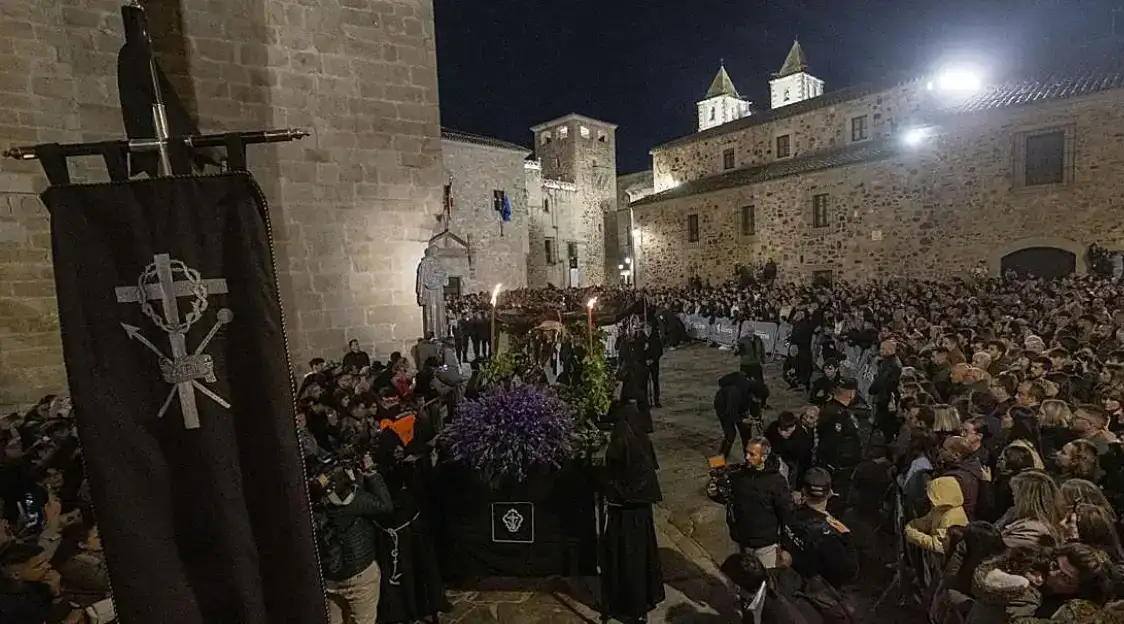 A las doce en punto, cuando la noche se vuelve densa y el aire parece contener la respiración, el Cristo Negro emerge desde la Concatedral de Santa María para recorrer la Ciudad Monumental de Cáceres en una de las procesiones más sobrecogedoras de España. No hay estridencias, no hay ruido: solo pasos, piedra, historia… y emoción.