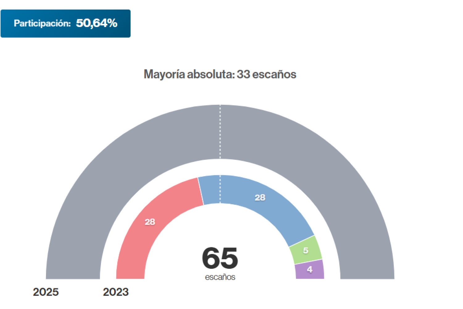 Los datos por provincias reflejan diferencias, aunque la tendencia general es similar. En Badajoz, la participación se sitúa en el 49,86%, siete puntos menos que en 2023. En Cáceres alcanza el 51,84%, con una caída de 5,70 puntos. El aumento del abstencionismo es uno de los elementos clave que marcarán el análisis posterior, especialmente en una contienda que todas las encuestas previas situaban como ajustada.