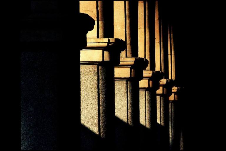 En la mañana dominical de lluvia hay páginas de viejo, plazas que bordan la geometría gris, paseos bajo el palio de las hojas que disfrutan