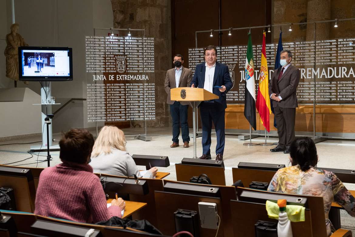 El presidente de la Junta de Extremadura, Guillermo Fernández Vara, el presidente de la Federación de Municipios y Provincias de Extremadura (FEMPEX), Francisco Buenavista, y