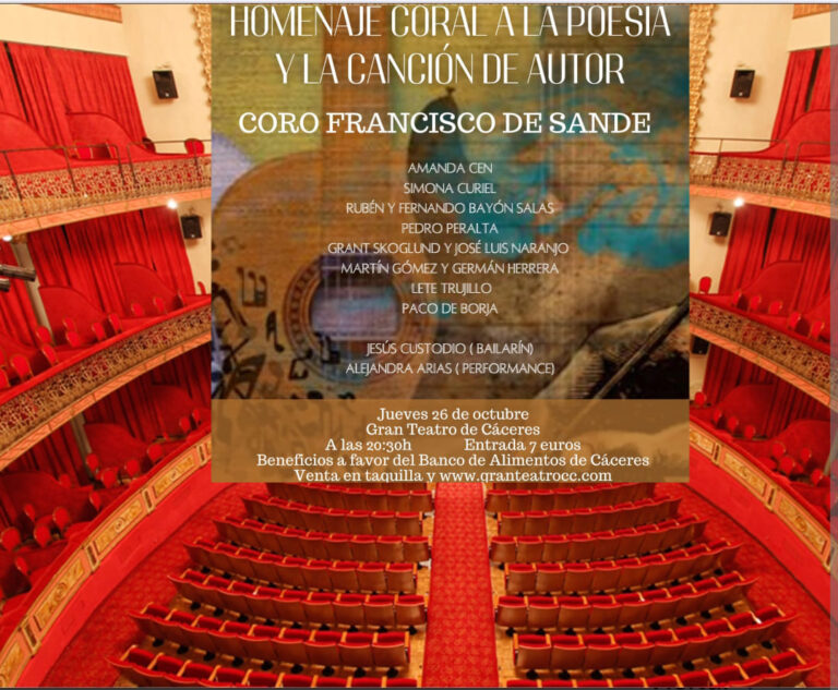 Este jueves, Cantautaria VIII solidario, con el Coro Francisco de Sande e invitados como homenaje a la Poesía y la canción de Autor