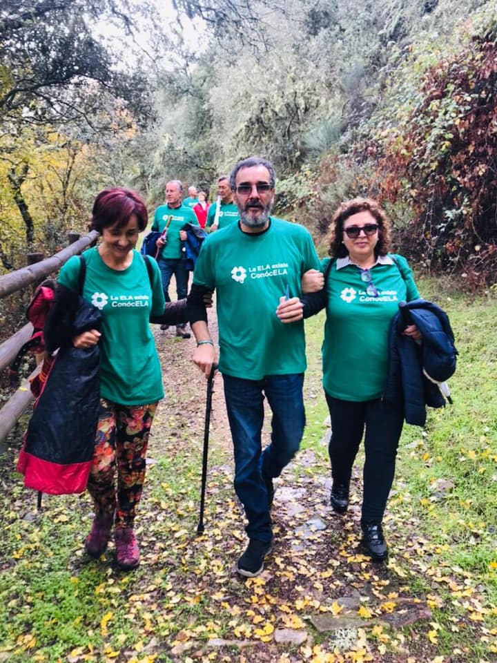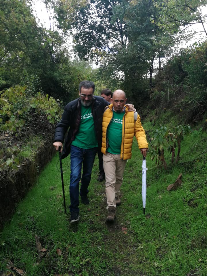 Marco sorbe su saliva con una perilla. Se apoya en un bastón. Su hermana le coge el brazo con amor y todos lucimos con orgullo la camiseta verde de la ELA. La lucha de Marco es nuestra lucha. Nunca caminarás solo, ese himno del Liverpol, es la hermosa imagen que refleja la fotografía.Ya estamos llegando a la meta. Marco sonríe entre sus dos mujeres más cercanas. Rosa su mujer es su mejor báculo. Como ella dice, «Yo tenia que animar a Marco y Marco me anima a mi«, En este difícil viaje que nadie ha elegido la familia lo es todo, porque la ELA no solo roba músculos, te roba tu empresa, tu modo de vida. Marco ha tenido que reinventarse y ha tomado la decisión de que la misma pasión que le ponía a su trabajo y a sus empresas se la pone a esta batalla, para que se investigue mucho màs, para los que el día de mañana recibirán sin esperarlo su sentencia de ELA tengan mas esperanza y mejores remedios que los que ahora la padecen.
