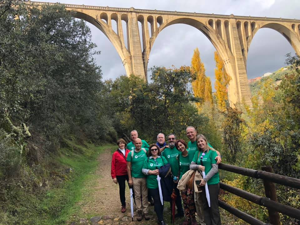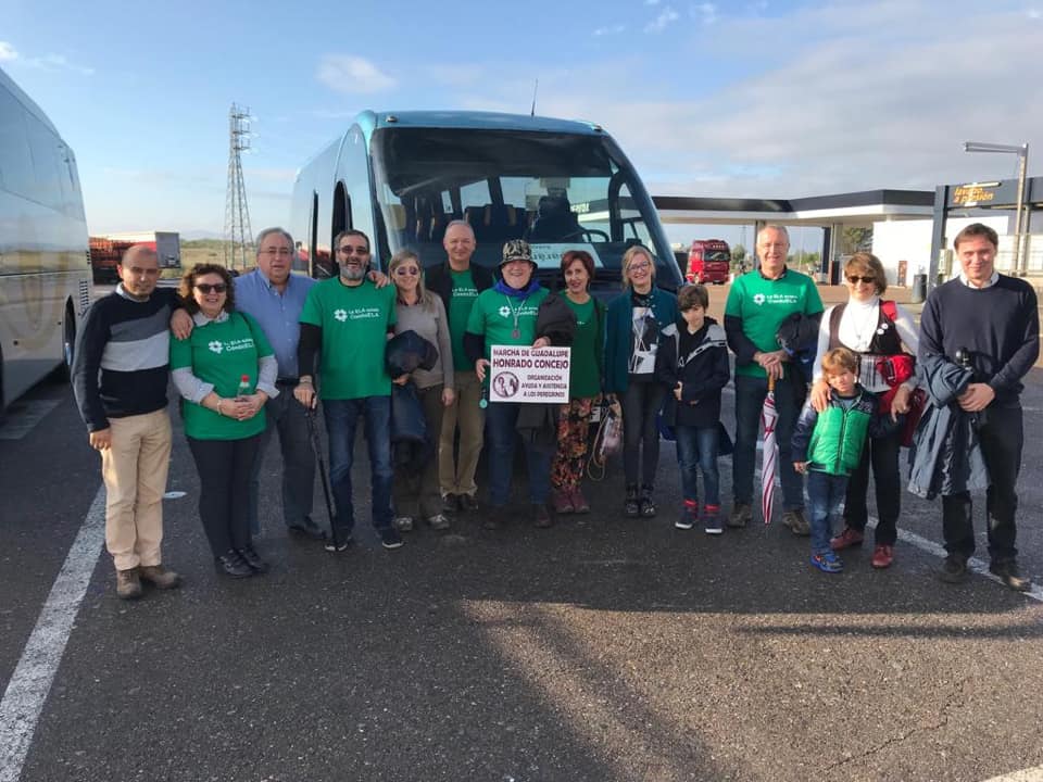 Valbuena posa su mano sobre el hombro de Marco, yo llevo el cartel de Guadalupe y mi nieto, Jaime el inquieto, ya ha encontrado buena compañía. La luz del otoño luminoso de Extremadura nos acompaña. Paramos a recoger al resto del grupo a Trujillo y vamos disfrutando de ese paraíso natural que son las Villuercas, Geoparque mundial de la UNESCO reverdecida por las lluvias.Cuando estamos todos juntos y dentro del autobús, comenzamos por lo màs importante, la seguridad. Valbuena nos indica los cinturones y las puertas con gracejo y soltura.