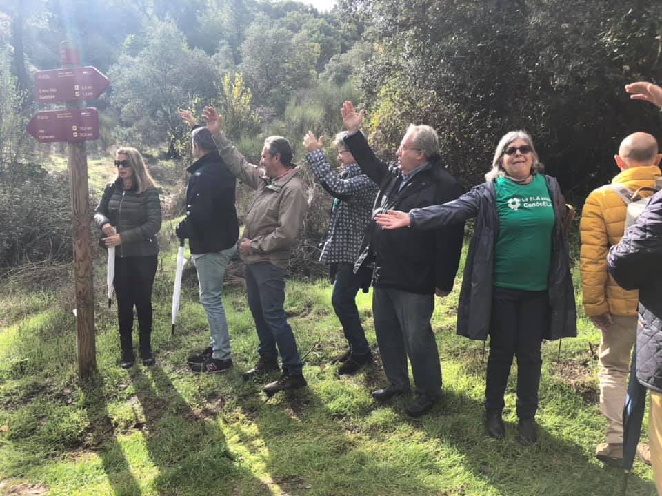 Dejamos el camino y penetramos en las calles de Guadalupe. Todos y todas con nuestras camisELAS, cantando » Que alegría cuando me dijeron ..» y dando vítores a la lucha contra la ELA. Las personas que ocupan en ese momento las sillas de las terrazas nos reciben con un aplauso espontáneo que nos hace felices.