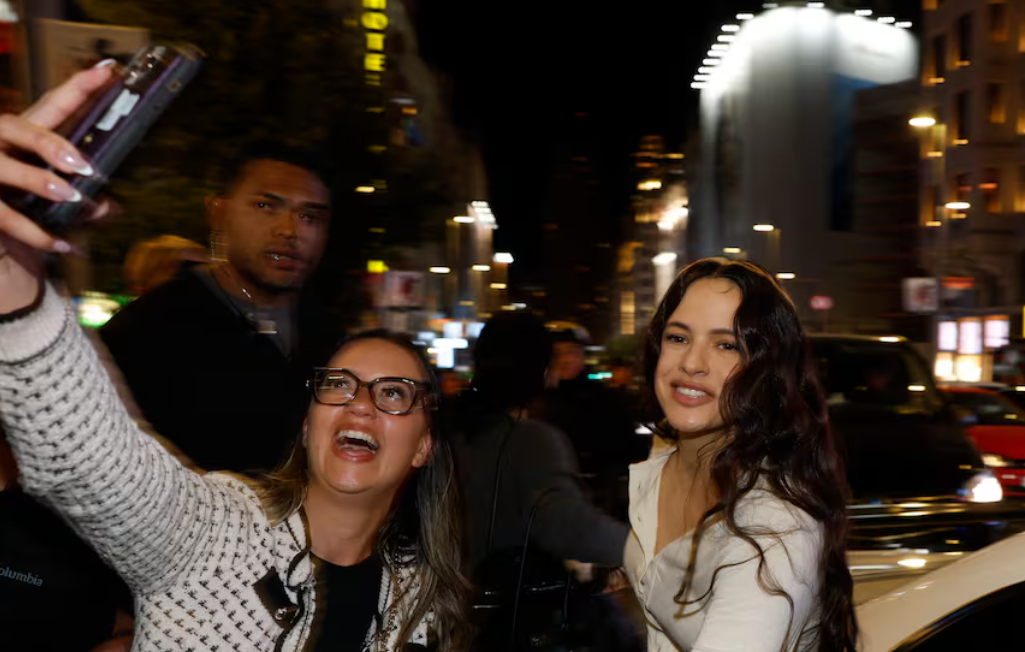 Subió al coche, con un rosario colgado del retrovisor, y anunció a su equipo: “Poneos el cinturón, que nos vamos de rally”. En el trayecto, se mezclaron Camarón, música clásica y Guitarricadelafuente. En plena Gran Vía, el atasco se convirtió en una estampida de fans. Rosalía tuvo que abandonar el vehículo y correr entre la multitud hasta refugiarse en un hotel cercano al cine Capitol.