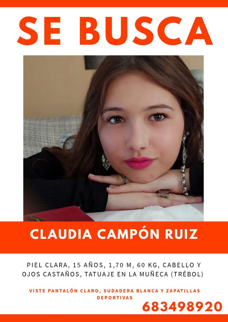 La joven de 15 años ha desaparecido en la mañana de este martes y nos e ha vuelto a saber nada de ella. Claudia Campón