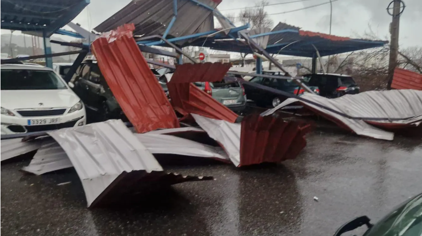 Coches desplazados varios metros, ramas enormes esparcidas por los accesos y elementos de la cubierta afectados han obligado a activar un protocolo interno para garantizar la seguridad de pacientes y personal.