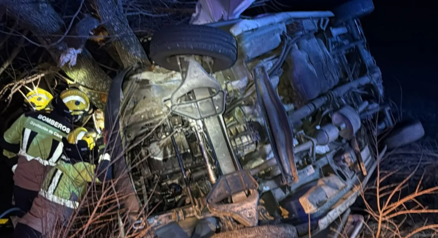 La tarde de este jueves dejó una escena devastadora en la N-521, a la altura de Valencia de Alcántara. Un conductor de 55 años perdió la vida después de que su vehículo se saliera de la carretera y terminara estrellado violentamente contra un árbol, quedando volcado y aprisionado entre las ramas y el tronco. El impacto fue tal que los bomberos del Sepei tuvieron que trabajar contrarreloj para excarcelar el cuerpo del único ocupante.